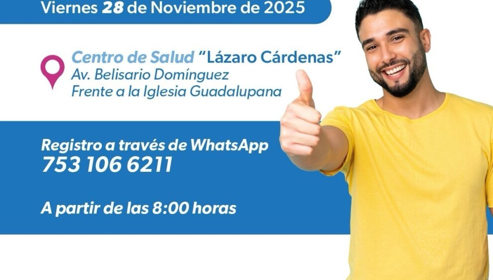 Los procedimientos se realizarán el viernes 28 de noviembre en el Centro de Salud de Lázaro Cárdenas, que se ubica en la avenida Belisario Domínguez, frente a la iglesia Guadalupana. Los interesados deben realizar un registro previo al WhatsApp 753 106 6211.