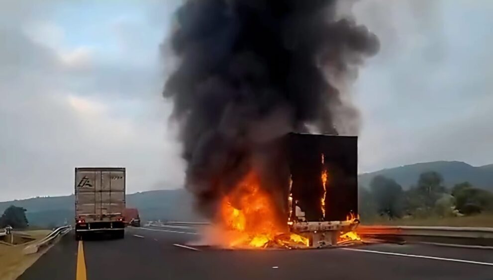 Huaniqueo, Mich.- Miércoles 01 de octubre de 2025.- Un tractocamión ardió en llamas sobre la Autopista México-Guadalajara, dentro del municipio de Huaniqueo, informaron fuentes allegadas al tema.
