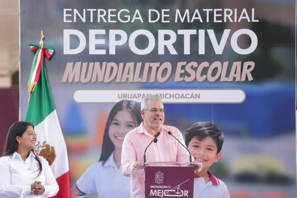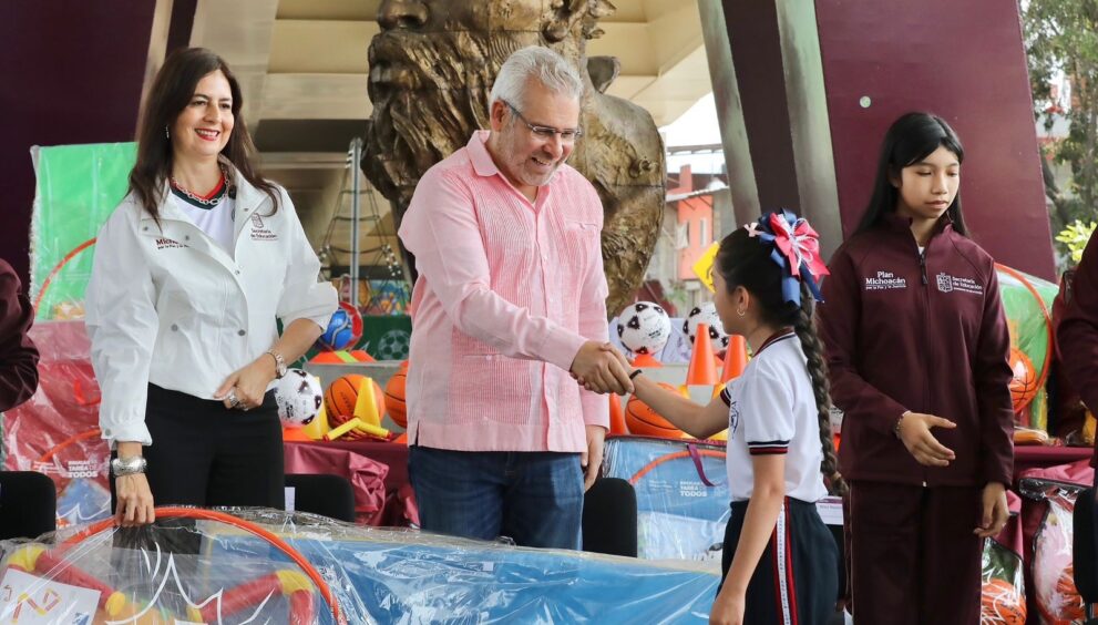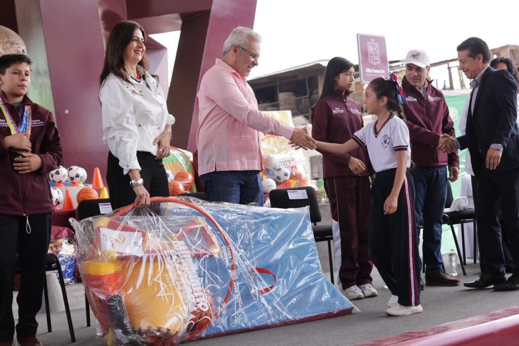 Arranca Bedolla en Uruapan entrega de material deportivo para más de 234 mil estudiantes