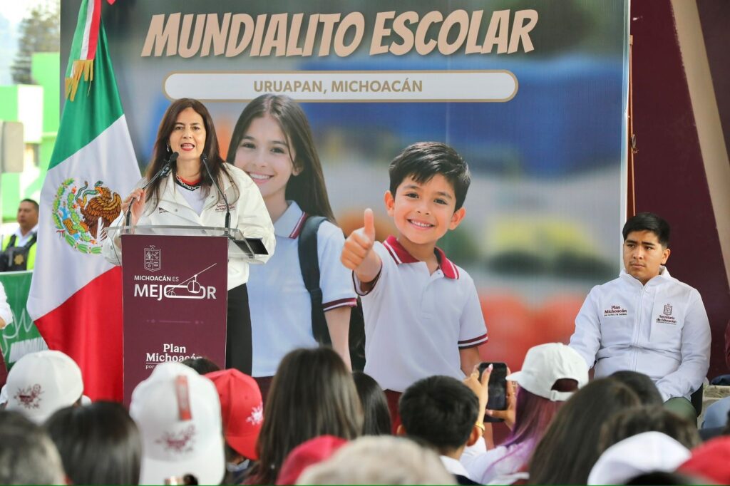 La secretaria de Educación, Gabriela Molina Aguilar, expuso que la entrega de este material deportivo se traduce en más actividades para las maestras y maestros, que representan el corazón del sistema educativo. Informó que en la región Uruapan se beneficiará a estudiantes de 12 municipios.