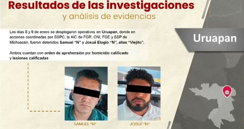 TRAS LABORES DE INVESTIGACIÓN SE DETUVO A DOS PERSONAS INVOLUCRADAS EN EL HOMICIDIO DEL EXALCALDE DE URUAPAN