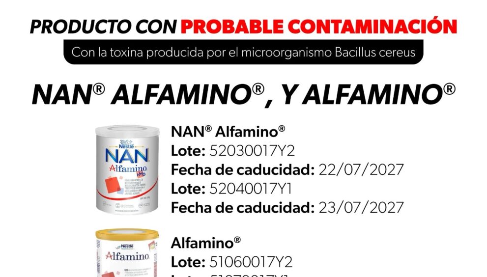 Esta medida precautoria se lleva a cabo debido a la probable contaminación con una toxina producida por el microorganismo Bacillus cereus en uno de los ingredientes utilizados en los lotes implicados, lo que podría representar un riesgo para la salud, especialmente en lactantes.