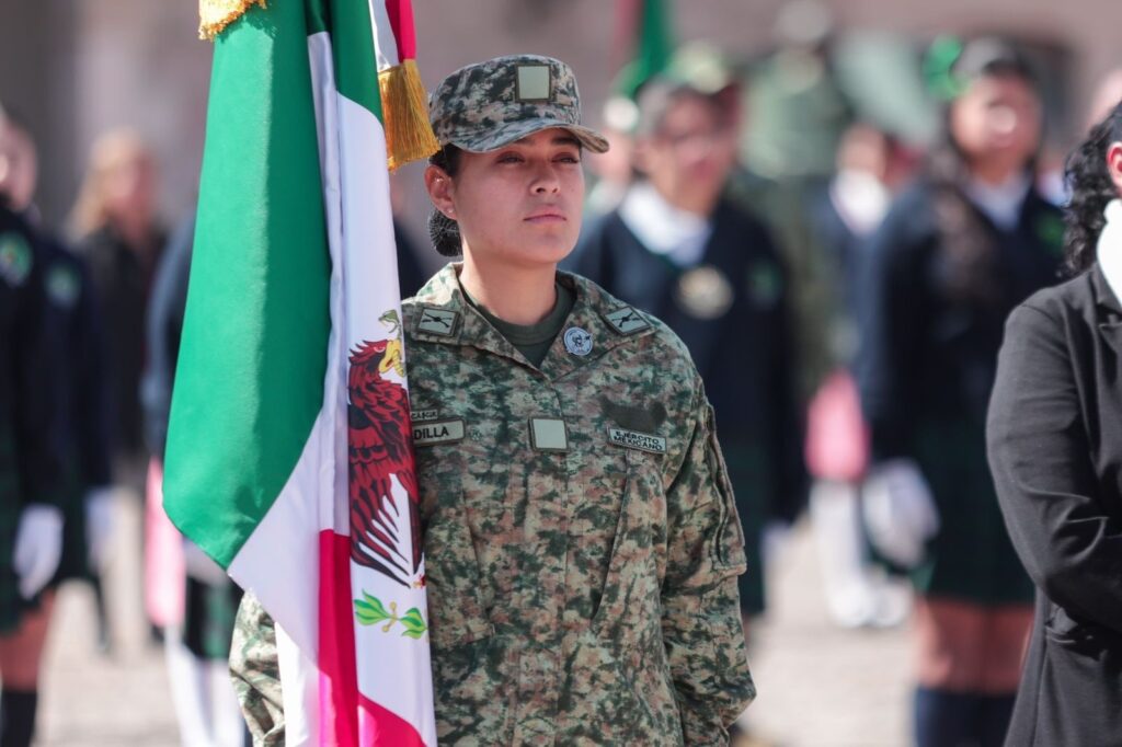 Por su parte, comandante de la XXI Zona Militar, Juan Bravo Velázquez, refirió que la bandera mexicana no es un símbolo, sino un compromiso vivo y el recordatorio permanente de que el país se construye con el esfuerzo de sus instituciones, ciudadanos y con la participación responsable de las y los jóvenes.