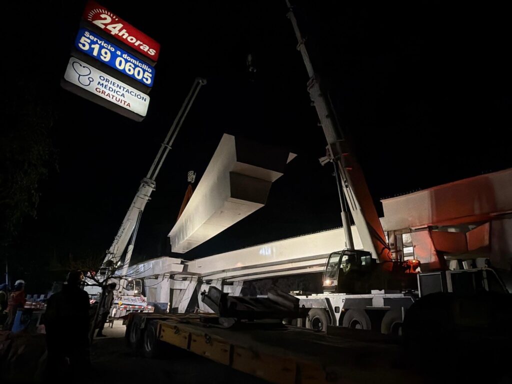Zarazúa Sánchez detalló que la obra cuenta con 150 trabajadores en sitio, distribuidos en tres turnos. Las labores actuales incluyen la colocación de ductería de media tensión, la nivelación y compactación de rellenos a nivel de subrasante, y la instalación de muros mecánicamente estabilizados en armados de losa. En cuanto a la estructura principal, se lleva a cabo el montaje nocturno de 24 de las 36 trabes metálicas totales, una medida implementada para disminuir la afectación vial en la zona.
