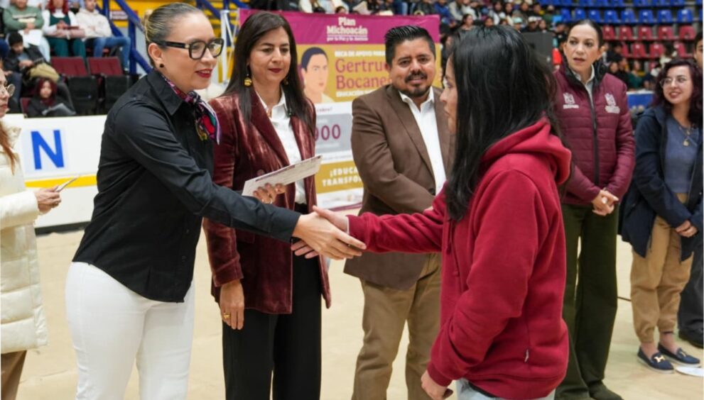 Tras explicar que la tarjeta del Banco del Bienestar, es el medio de cobro a través del cual se va a estar dispersando cada bimestre el recurso para que las alumnas y alumnos puedan recibir el apoyo correspondiente a la beca, señaló que para la presidenta Claudia Sheimbaum, el sector joven pero particularmente los estudiantes, son de suma importancia, de ahí que el día 9 de noviembre pasado se dio a conocer el Plan Michoacán, que comprende 12 ejes y 100 acciones, y una de ellas es la beca Gertrudis Bocanegra.