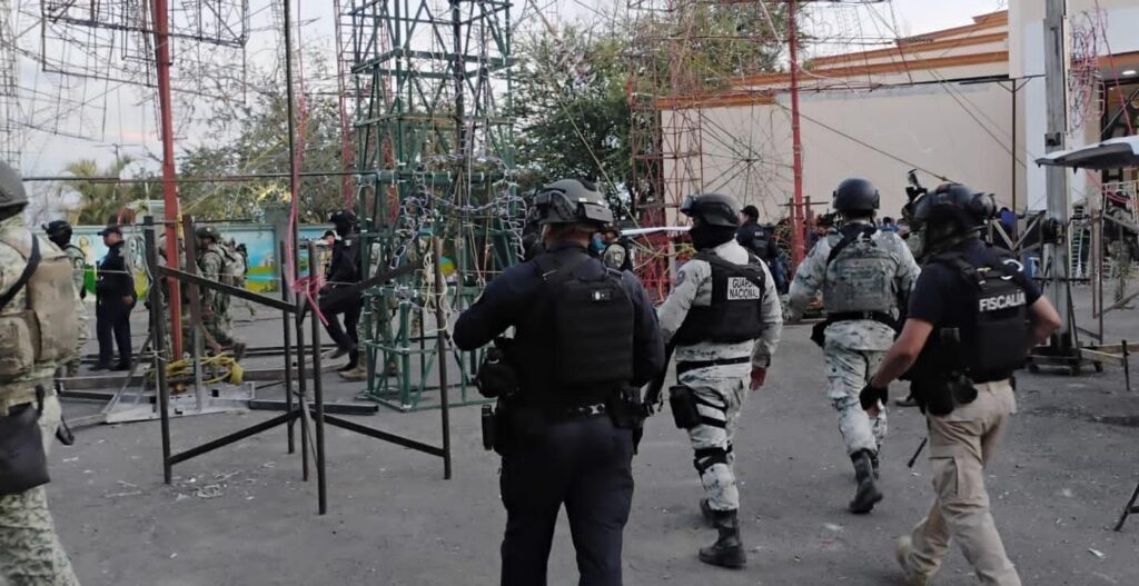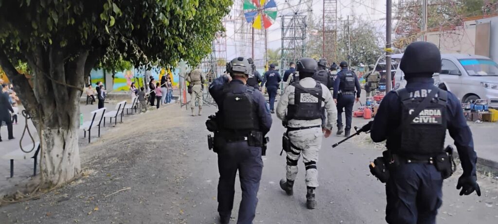En una acción conjunta, agentes de la Guardia Civil, el Ejército Mexicano, la GN y la FGE se desplegaron en las fiestas patronales de la citada demarcación, donde detectaron una estructura de pirotecnia que exhibía imágenes vinculadas a un grupo delictivo. En el sitio también se localizaron lonas impresas con fotografías de objetivos criminales.