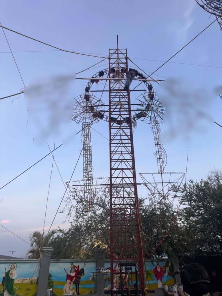 Tanhuato, Michoacán, 16 de enero de 2026.- Elementos de las secretarías de Seguridad Pública (SSP), de la Defensa Nacional (Defensa), y de la Guardia Nacional (GN), y Fiscalía General del Estado (FGE), desmontaron y aseguraron un castillo de fuegos artificiales, con características alusivas a la apología del delito; hecho registrado en la localidad de Tinaja de Vargas.