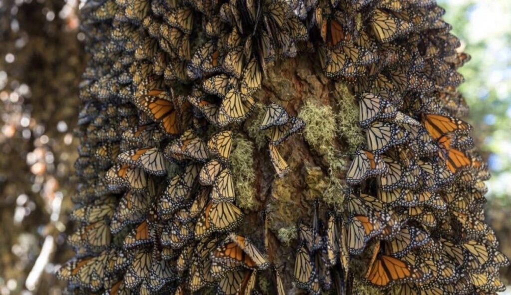 El turista y visitante podrá disfrutar de un espectáculo natural con cientos de mariposas reunidas en las copas de los árboles de oyamel para conservar calor y energía. A medida que el sol templa el ambiente, sus alas se despegan y comienzan el vuelo, pintando de naranja, blanco y negro el cielo de los santuarios El Rosario, Sierra Chincua y Senguio. Este momento único es aprovechado por los ejemplares para buscar néctar o bajar a los ríos por agua.