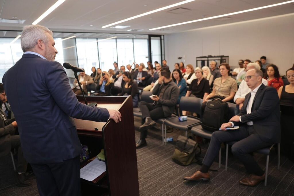 Nueva York, Estados Unidos, 24 de septiembre de 2025.- El Guardián Forestal fue reconocido por Climate Rights Internacional como el mejor sistema de vigilancia satelital en el mundo para defender la conservación de los bosques, luego de la presentación que realizó el gobernador Alfredo Ramírez Bedolla durante la semana del clima (Climate Week) realizada en Nueva York, Estados Unidos.