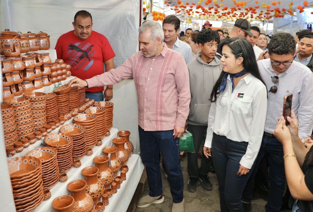El mandatario destacó que hoy, la feria se consolida como un escaparate que da a conocer a nivel nacional e internacional la tradición alfarera de la tenencia, donde se elaboran piezas únicas de catrinas y loza punteada, al tiempo que preserva y enaltece estas artesanías elaboradas por manos morelianas.