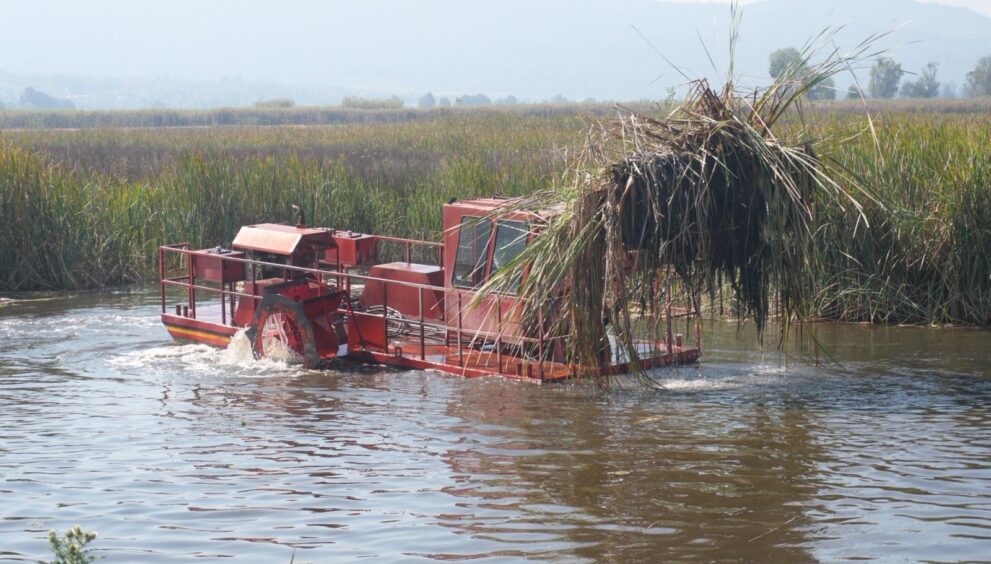 • Se usa maquinaria especializada para retirar lirio y chuspata, y devolver el flujo natural al agua
