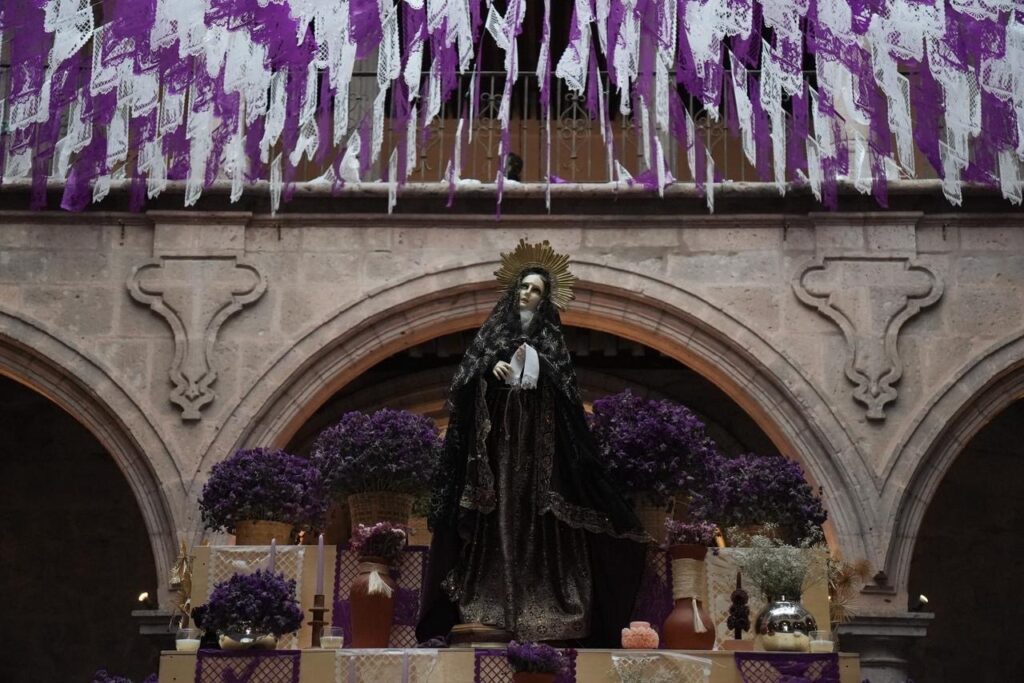 En el interior del Palacio Municipal de Morelia fue instalado un altar como parte de las actividades culturales y religiosas que acompañan la Semana Santa en la capital michoacana.