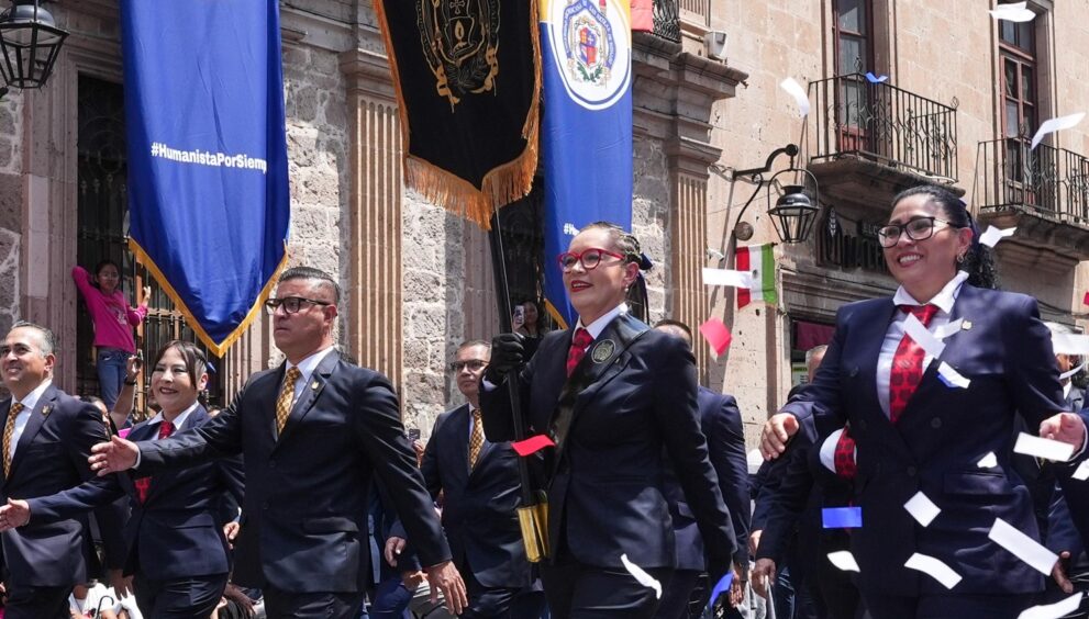 Con paso firme y entre aplausos del público, el contingente de la UMSNH integrado por cerca de 800 elementos entre funcionarias, funcionarios, directoras y directores de escuelas, facultades e institutos, consejeros universitarios, docentes, estudiantes e integrantes de la galardonada Banda de Guerra recorrieron la Avenida Madero haciendo vibrar el corazón del Centro Histórico de Morelia con la historia, juventud y orgullo académico que representa la Máxima Casa de Estudios.