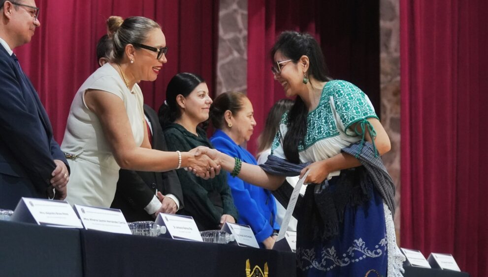 Agradeció a sus maestras y maestros, así como el apoyo de sus familias, y refirió que al estudiar idiomas cada palabra trae consigo un pedacito de cultura, de historia y de humanidad. “Aprender otra lengua no sólo abre puertas afuera también abre puertas adentro de nosotros mismos”.