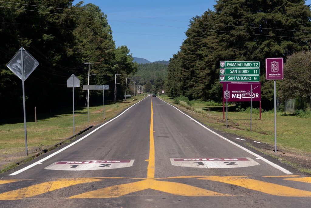 Destacó que a través de la Secretaría de Comunicaciones y Obras Públicas (SCOP), fueron intervenidos 23 kilómetros de los tramos carreteros comprendidos entre Charapan-Pamatácuaro-Sicuicho y San Antonio-San Isidro.