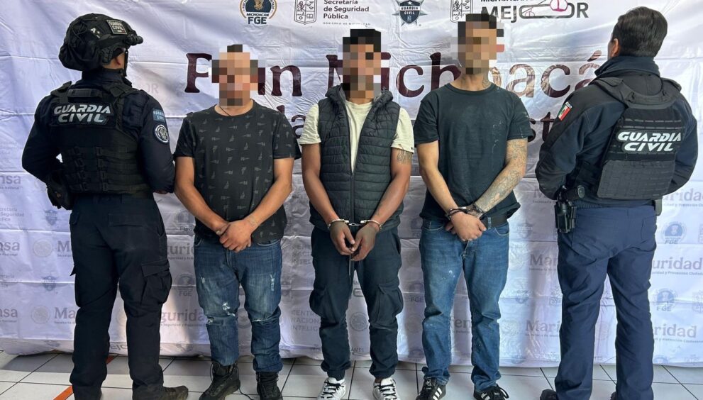 Morelia, Michoacán, 2 de marzo de 2026.- Como resultado de los operativos permanentes en Uruapan, la Guardia Civil detuvo en dos acciones distintas a cuatro hombres y una mujer en posesión de droga y armas de fuego. Según las investigaciones, presuntamente estarían relacionados con una célula delictiva.