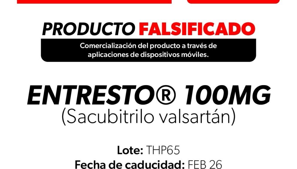 Se exhorta a la población a no adquirir ni consumir Entresto®️ (Sacubitrilo valsartán) con el número de lote THP65, con cualquier fecha de caducidad. Evitar la compra de medicamentos en tianguis, mercados, establecimientos informales o por medios digitales no autorizados, especialmente si se ofrecen a precios inusualmente bajos o no cuentan con registro sanitario.