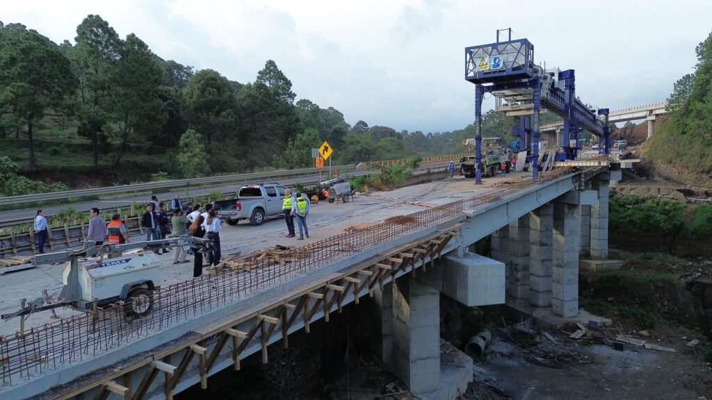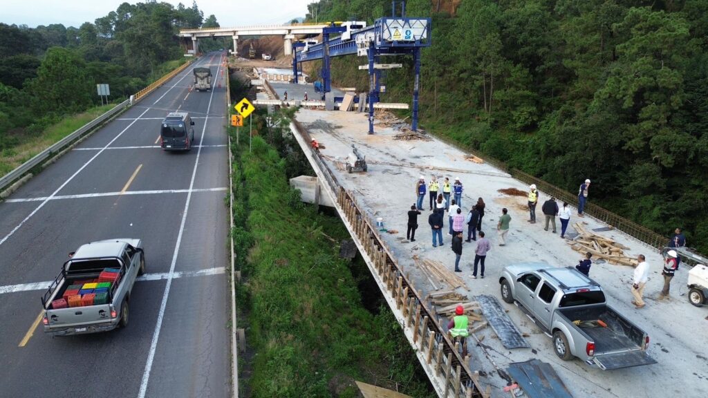 Por su parte, el residente de la obra, Antonio Ramírez, explicó al gobernador que actualmente se realizan trabajos con una máquina lanzadora de trabes, encargada de transportarlas y colocarlas en el puente, lo que optimiza los tiempos de desarrollo en este tipo de megaobras.