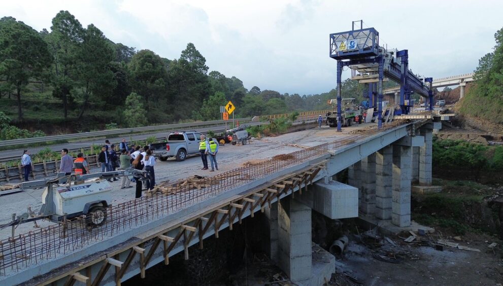 Por su parte, el residente de la obra, Antonio Ramírez, explicó al gobernador que actualmente se realizan trabajos con una máquina lanzadora de trabes, encargada de transportarlas y colocarlas en el puente, lo que optimiza los tiempos de desarrollo en este tipo de megaobras.
