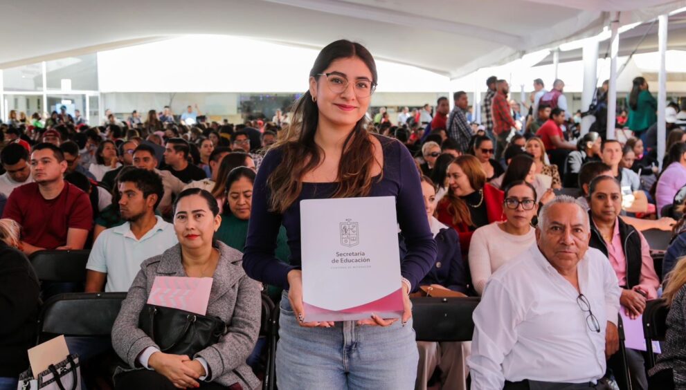 Morelia, Michoacán, 13 de noviembre de 2025.- Con hasta diez años de espera, más de mil docentes de nivel primaria reciben su nuevo Formato Único de Personal (FUP) y órdenes de adscripción, tras concluir su proceso de Cambio de Oficina Pagadora, esto como parte de las acciones de justicia laboral que implementa el Gobierno de Michoacán a través de la Secretaría de Educación del Estado (SEE), encabezada por Gabriela Molina.
